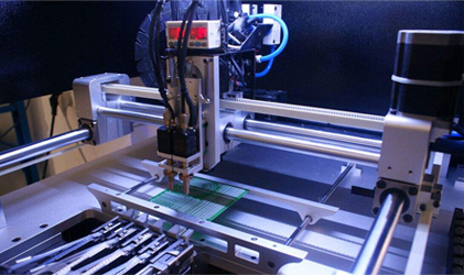 貼片機:又稱“貼裝機”、“表面貼裝系統”(Surface Mount System),在生產線中,它配置在點膠機或絲網印刷機之后,是通過移動貼裝頭把表面貼裝元器件準確地放置PCB焊盤上的一種設備。分為手動和全自動兩種。